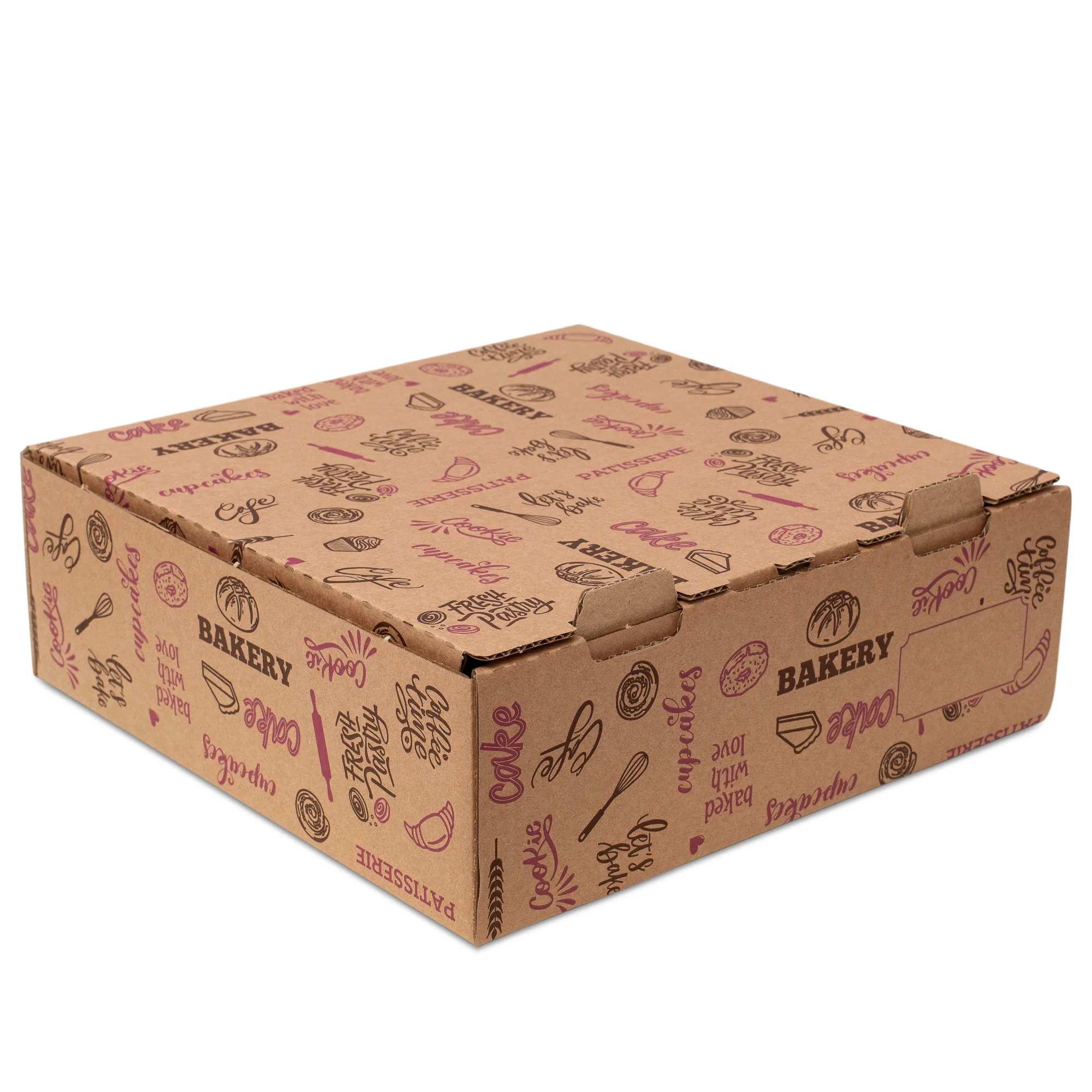 קרטון איכותי בגודל 300/300/100 מ"מ, מעוצב במיוחד לאריזת עוגות שטוחות, עוגות מוס, או קינוחים יוקרתיים, עם הדפס כללי שמשדר מקצועיות וניקיון.