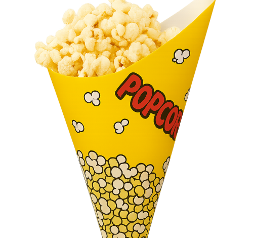 עיצוב: הדפס פופקורן קלאסי (בדרך כלל צהוב/אדום-לבן).