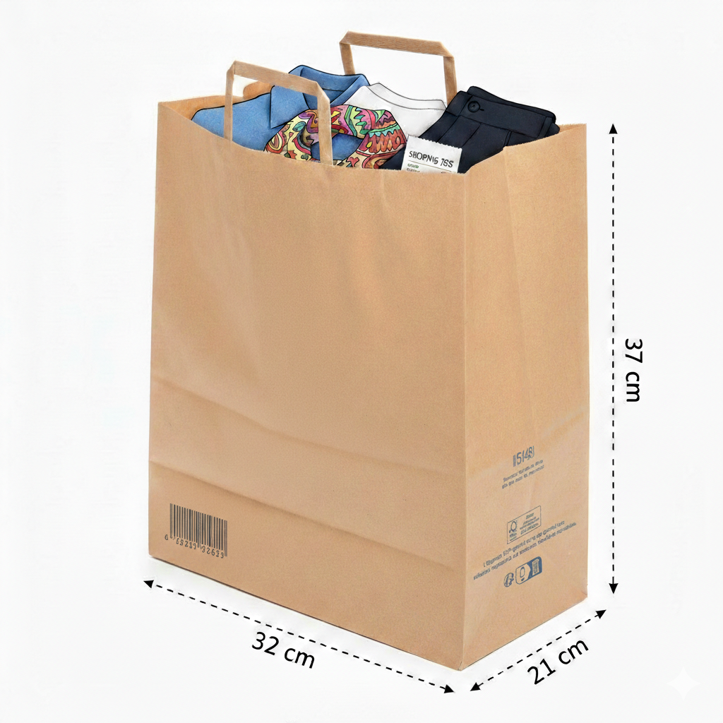 השקית כוללת ידיות נייר שטוחות לנשיאה נוחה ובטוחה.